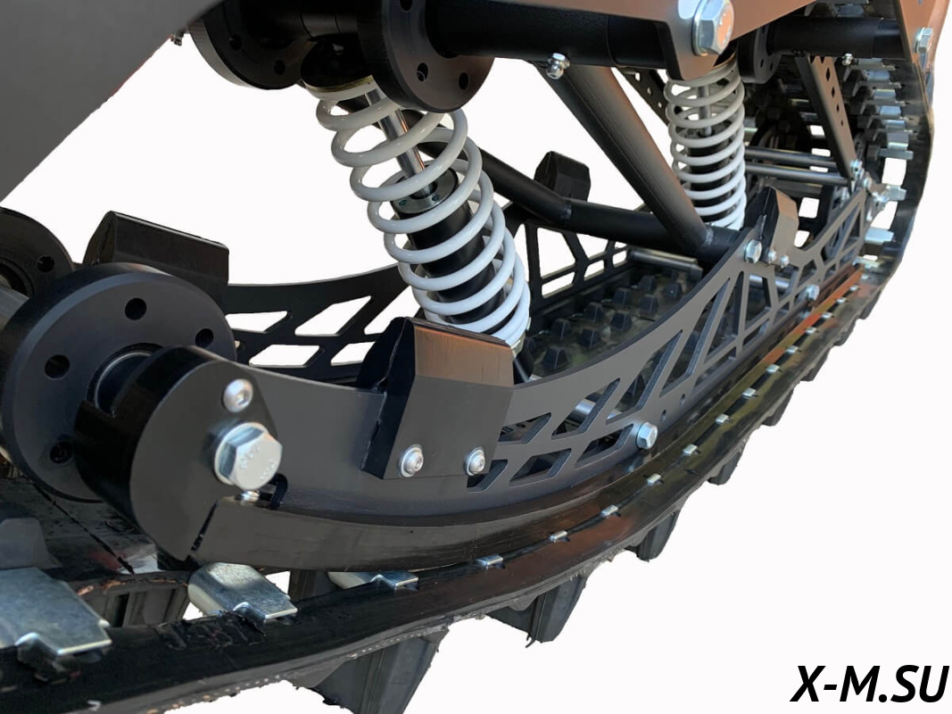 Тормоз интегрирован в раму, полностью изолирован от внешней среды, отсутствует контакт со снегом. Дисковый, гидравлический, двухпоршневой суппорт. Тормозная гидравлическая магистраль 1600мм, армированный тефлон. В комплекте поставляется полностью прокачанная тормозная система с установленной тормозной машинкой.