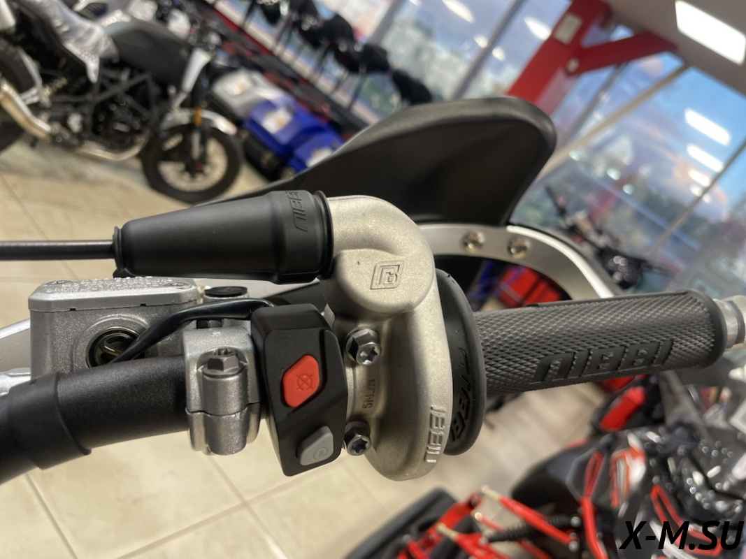 Алюминиевый руль переменного сечения TWINWALL оборудован короткоходной ручкой газа от NIBBI Racing и грипсами на замке, исключающими проскальзывание и сползание грипсы. Подушка безопасности на руле – неотъемлемая часть. Курки сцепления и тормоза – неломайки из фрезерованного алюминия от бренда NIBBI Racing! Элементы управления максимально прочные и легкие для достижения баланса мощности и веса! Сидень с противоскользящим покрытием удержит на себе райдера в критических ситуациях!