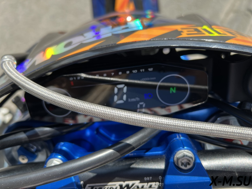 Алюминиевый руль TWINWALL оборудован короткоходной ручкой газа от NIBBI Racing и грипсами на замке, исключающими проскальзывание и сползание грипсы. Подушка безопасности на руле – неотъемлемая часть. Курки сцепления и тормоза – неломайки из фрезерованного алюминия от бренда NIBBI Racing! Элементы управления максимально прочные и легкие для достижения баланса мощности и веса! Сидень с противоскользящим покрытием удержит на себе райдера в критических ситуациях!