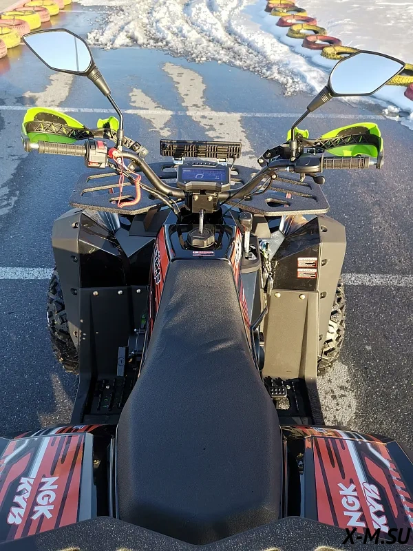 Крутой квадроцикл! Покупала для покатушек за городом, и он полностью оправдал ожидания. Мощность двигателя достаточна для любых задач, подвеска мягкая, комфортно ехать даже по ужасной дороге. Электронная панель приборов удобная и интуитивно понятная. Два багажника — это огромный плюс! Свет фар отличный, даже ночью всё видно. Защита рук и зеркала — тоже очень нужные вещи. Качество сборки на высоте. Мало вибраций, двигатель работает тихо и ровно. Сиденье удобное, даже на больших расстояниях не устаёшь. Короче, всё супер, я очень довольна своей покупкой. Единственный минус — небольшая опечатка в инструкции, но на работу квадроцикла это не влияет.